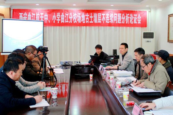2月21日,第二綜合物探大隊西安中勘公司舉辦了一場斷裂帶地裂縫問題研討交流暨西安曲江航天中小學曲江分校場地古土壤不連續問題分析論證會。會議邀請陜西省地震局馮希杰研究員、機械工業勘察設計研究院張家明教授、中國有色西安勘察設計研究院林頌恩教授3位專家到會點評指導。