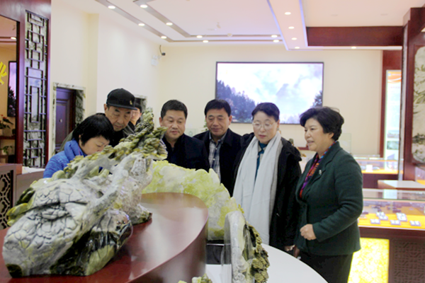 11月15日,著名作家葉廣芩在漢中市人大常委會黨組書記、副主任李林華陪同下,來漢源玉業公司參觀指導。漢源玉業公司副總經理、總會計師熱情接待了葉廣芩一行,并陪同參觀了公司玉雕廠和玉石展廳。
