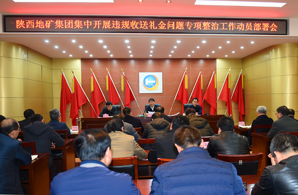 12月24日,根據中央、省委精神,按照省國資委黨委的統一部署,地礦集團公司召開集中開展違規收送禮金問題專項整治工作動員部署會。集團公司黨委書記、董事長趙廷周作動員講話。黨委副書記、總經理劉建勤主持會議。黨委副書記、紀委書記張軍對集團公司集中開展違規收送禮金問題專項整治工作作出安排部署。集團公司領導潘發明、馬貴鎖、何淑萍、安增會、萬兆發出席。