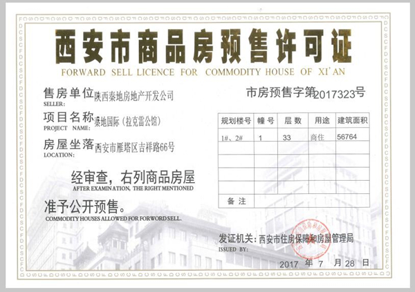 7月28日,拉克雷公館獲《商品房預售許可證》。拉克雷公館現已五證齊全,營銷中心正常開放。