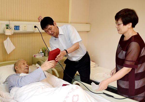 總公司其他領導齊文、吳學海、劉建勤、張軍、潘發明每到一處看望慰問,一進門就緊握住這些離休干部的雙手,詳細詢問他們的身體和生活情況,向他們曾為革命事業作出的貢獻表示敬意和感謝,并送上“中國人民抗日戰爭勝利70周年”紀念章和慰問金,祝他們和家人生活幸福、身體健康。