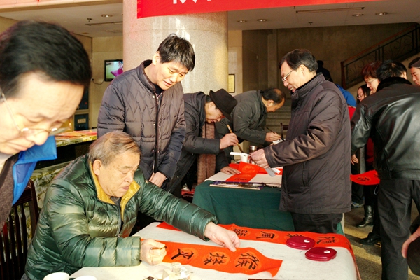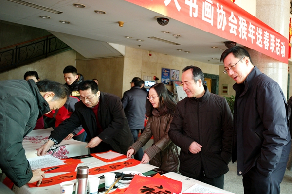 2月3日,陜西地礦老年人書畫協會在總公司總部機關一樓大廳開展了猴年送春聯活動。